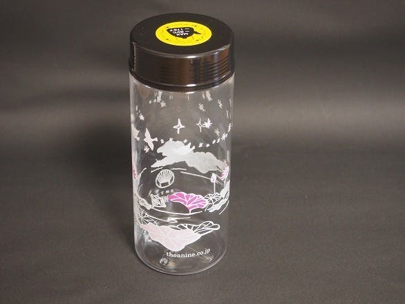 「テアニン柄(青色)」と同じデザインの透明ボトルです。