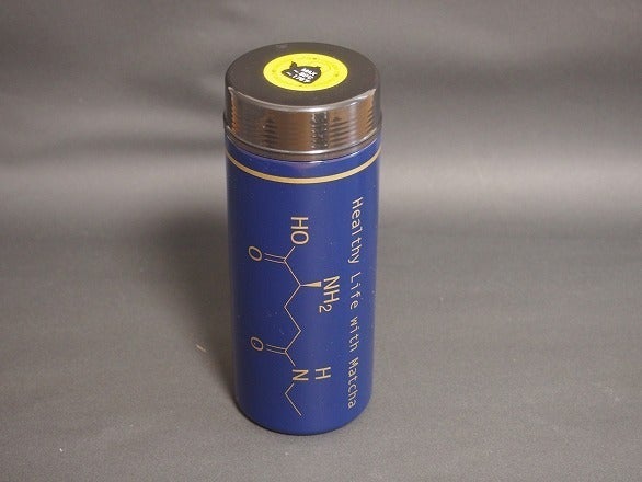 抹茶を飲んで健康になっていただきたいとの思いで、テアニンの化学式と「Healthy Life with Matcha」のメッセージを入れたデザインです。