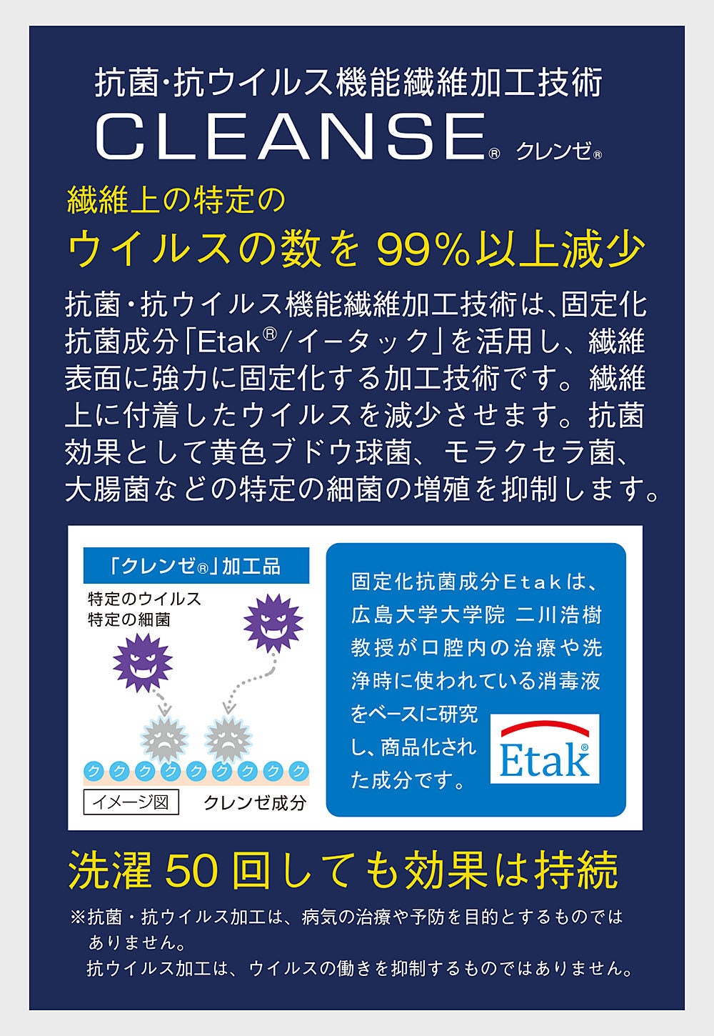 内装生地は、抗菌・抗ウイルス機能繊維加工技術『CLEANSE®︎(クレンゼ®︎)』で加工したコットンを使用。洗うことも可能で、50回洗濯してもその効果は持続します。