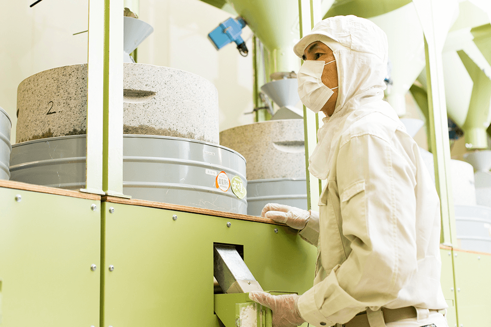 約70年にわたって玄そばを挽き続けてきた経験と契約農場の卓越した栽培方法が融合し、高品質なオーガニック(有機)そば粉を生産しているのです。