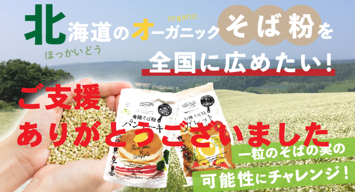 2020/11/24 15:17この度は『北海道のオーガニックそば粉を全国に広めたい!』プロジェクトにご支援を賜りまして、ありがとうございます。山加製粉代表の藤沢と申します。まずは、ご支援くださいました37名の皆様に厚くお礼を申し上げます。初めてのクラウドファンディングに何から始めたら良いのか戸惑いながらではございましたが、ご支援のメールが届くたびに応援して頂いている実感が湧きました。日本そばに留まらない『そば粉商品』を沢山の方々に知って頂くチャンスを頂きました。また、応援のメッセージやSNS上でのシェアなどで、ご支援を頂いた方々にも厚くお礼を申し上げます 。今後もそばの実一粒からの可能性を模索しながら、より多くの方々に手にとって頂けるような商品を作っていきたいと思います。ご意見、ご声援なども頂けますと従業員一同励みになります今後とも何卒よろしくお願い申し上げます。末筆ではございますが、皆さまのご健康をお祈りしつつ、まずはお礼を申し上げます。ありがとうございました。 もっと見る