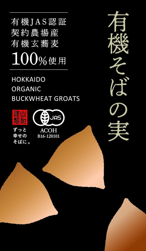 そばの作付面積・収穫量日本一を誇る北海道の有機JAS認証契約農場で、無農薬栽培された良質な有機玄そばをさらに選別し、 小粒を取り除き脱殻したオーガニックなそばの実です。