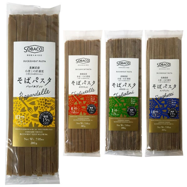 北海道産小麦粉と北海道産そば粉で仕上げた「そばパスタ」は全部で4種類。