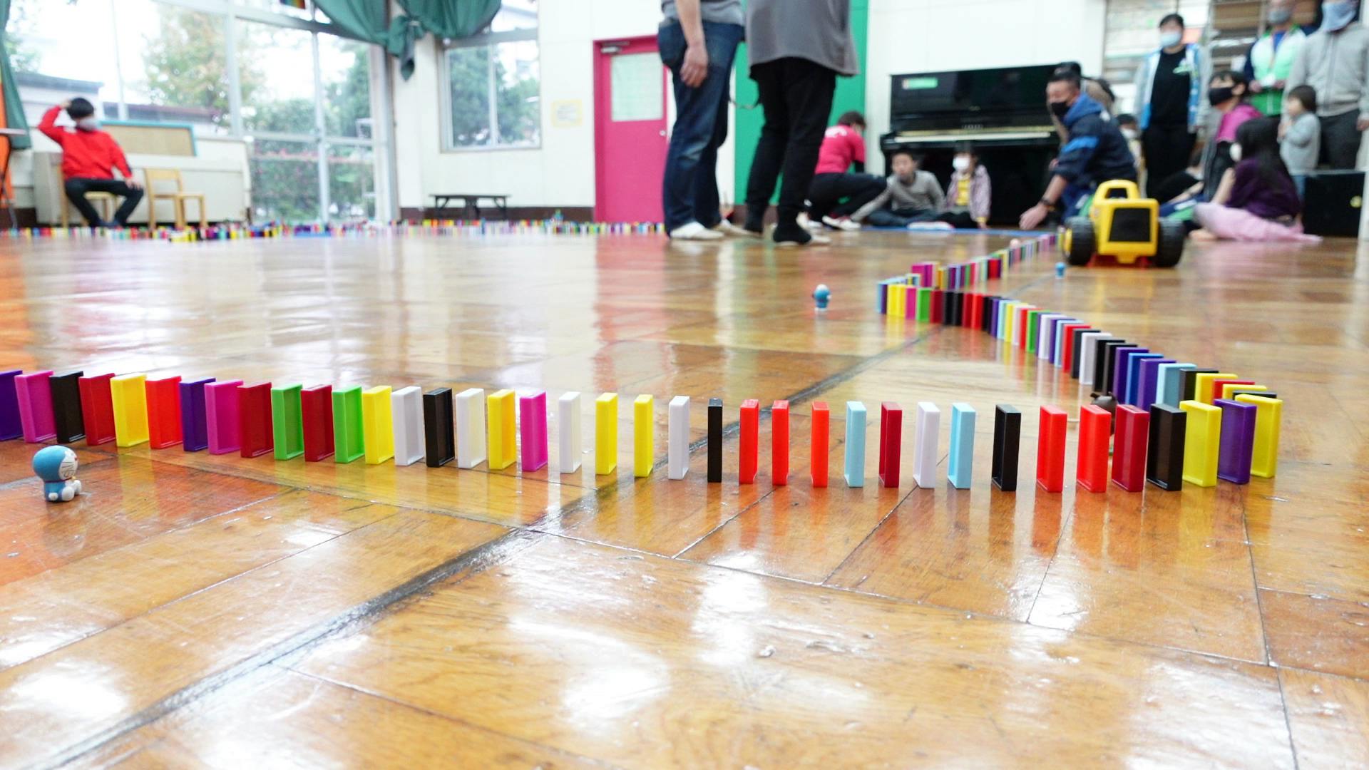 市内の全児童館が参加し、ドミノ、ピタゴラスイッチで多摩市内をつないでいきます。