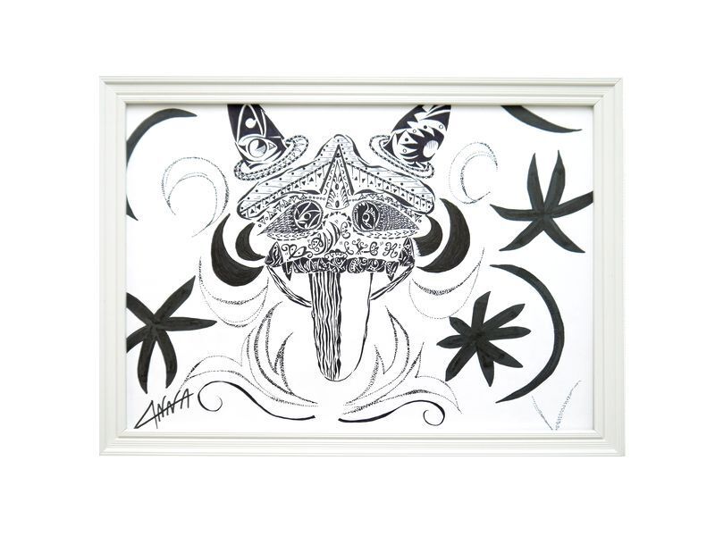 ある程度鉛筆で構想し、そこからペンで内部のデザインを気持ちのまま下書き無しで