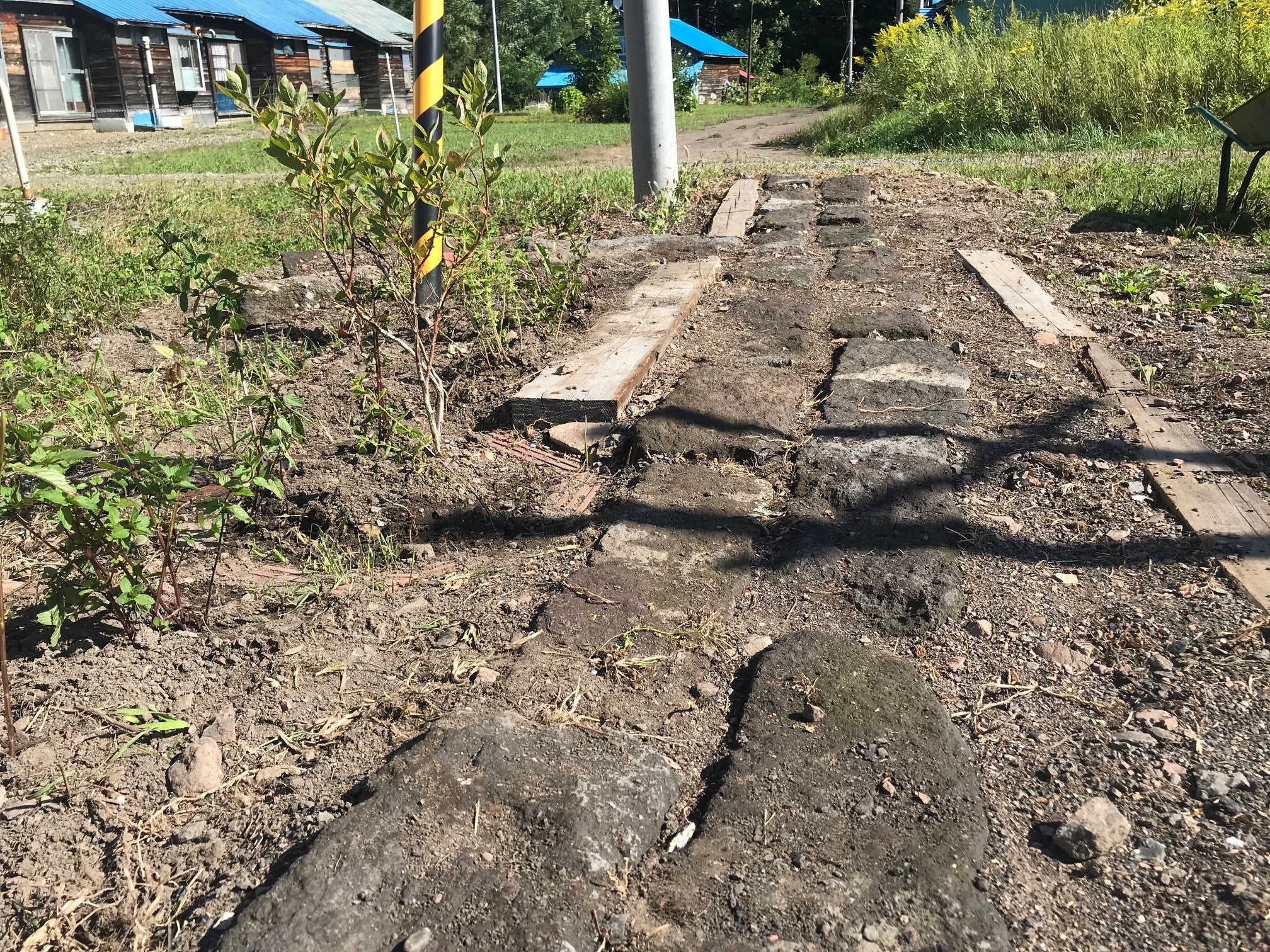 ゴミだらけの一部のゴミを捨てて、庭に石と木の道を作りました。ブルーベリーの木も植えました。
