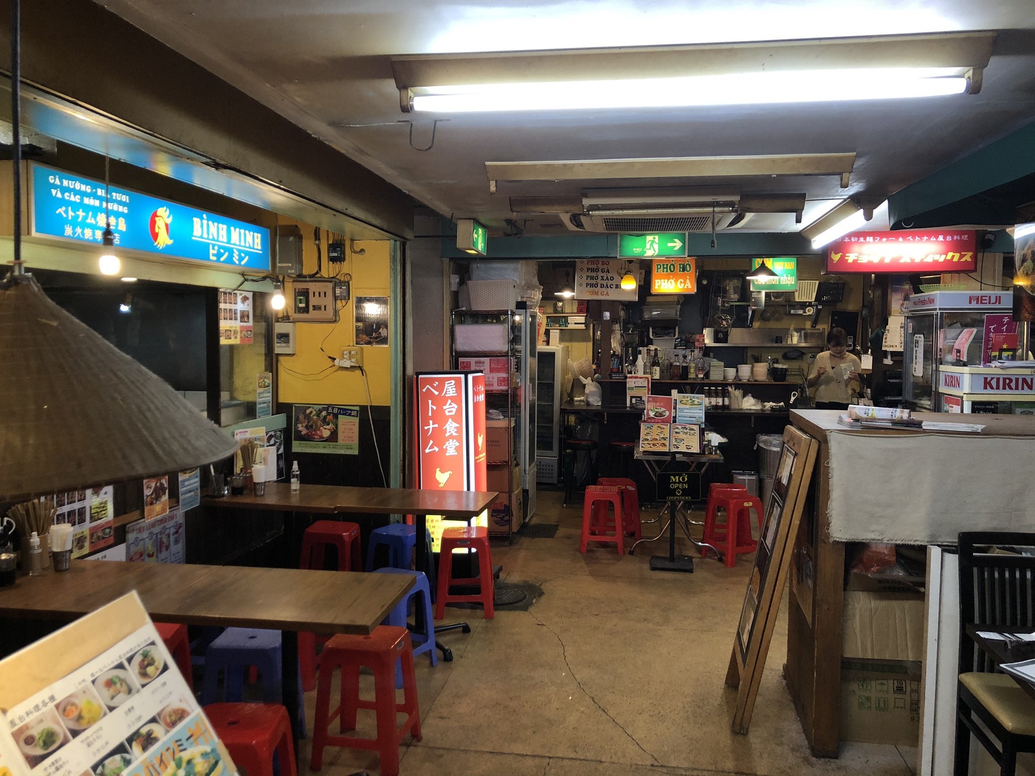 おすすめメニューは名前が覚えられないから雰囲気でいうと、生春巻きと、エビのから揚げと、隣のベトナム焼き鳥屋で作ってくれる鳥の足の焼き鳥(甘辛くておいしいし見た目がグロい)。フォーは当然にどれもおいしいが汁なしより汁有りがお勧め。ベトナムビールの種類があるので楽しい。