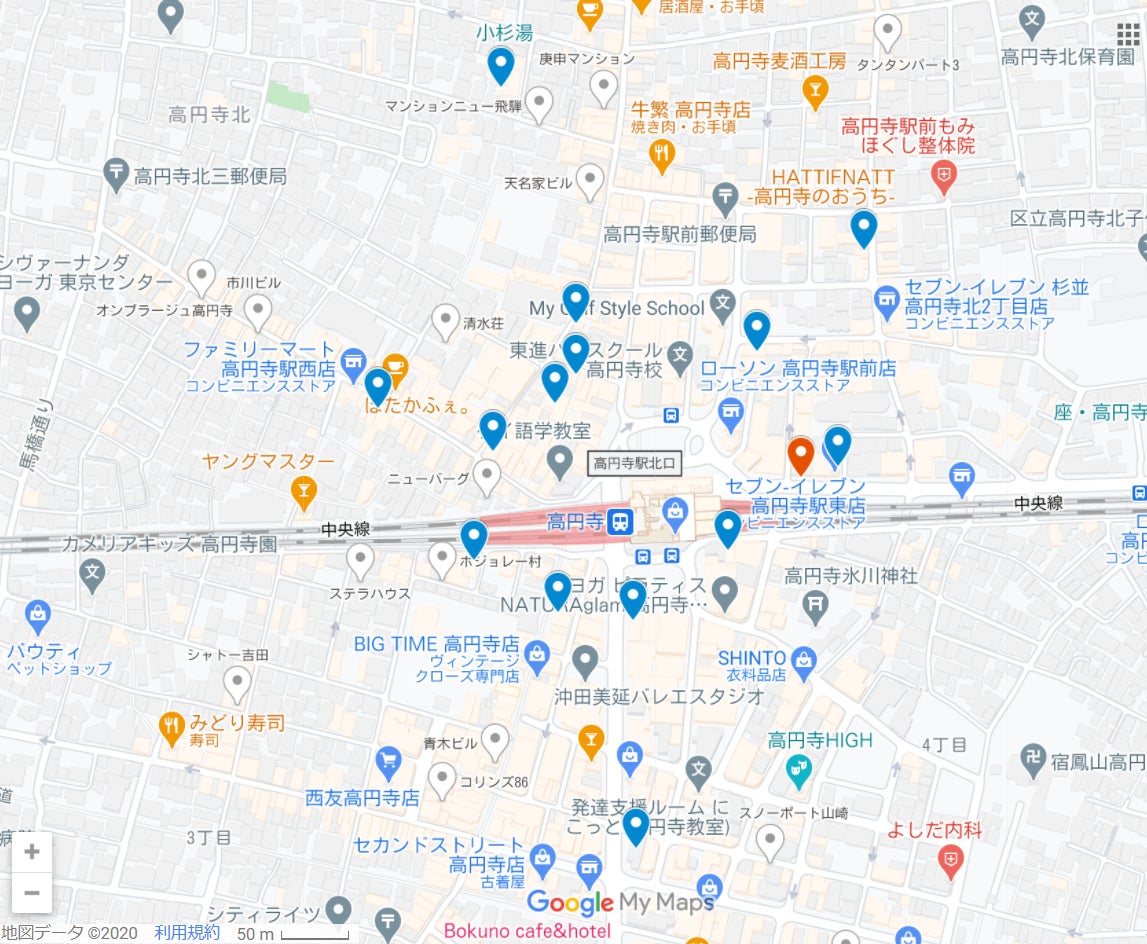 東京都杉並区高円寺南4丁目7 でググって辿り着いてください。高円寺駅南口から通り沿いに下ったところ。ローソンの手前。駅徒歩約3分。阿波おどりのとき2階のテラスで飲んでる人々が羨ましいビル。
