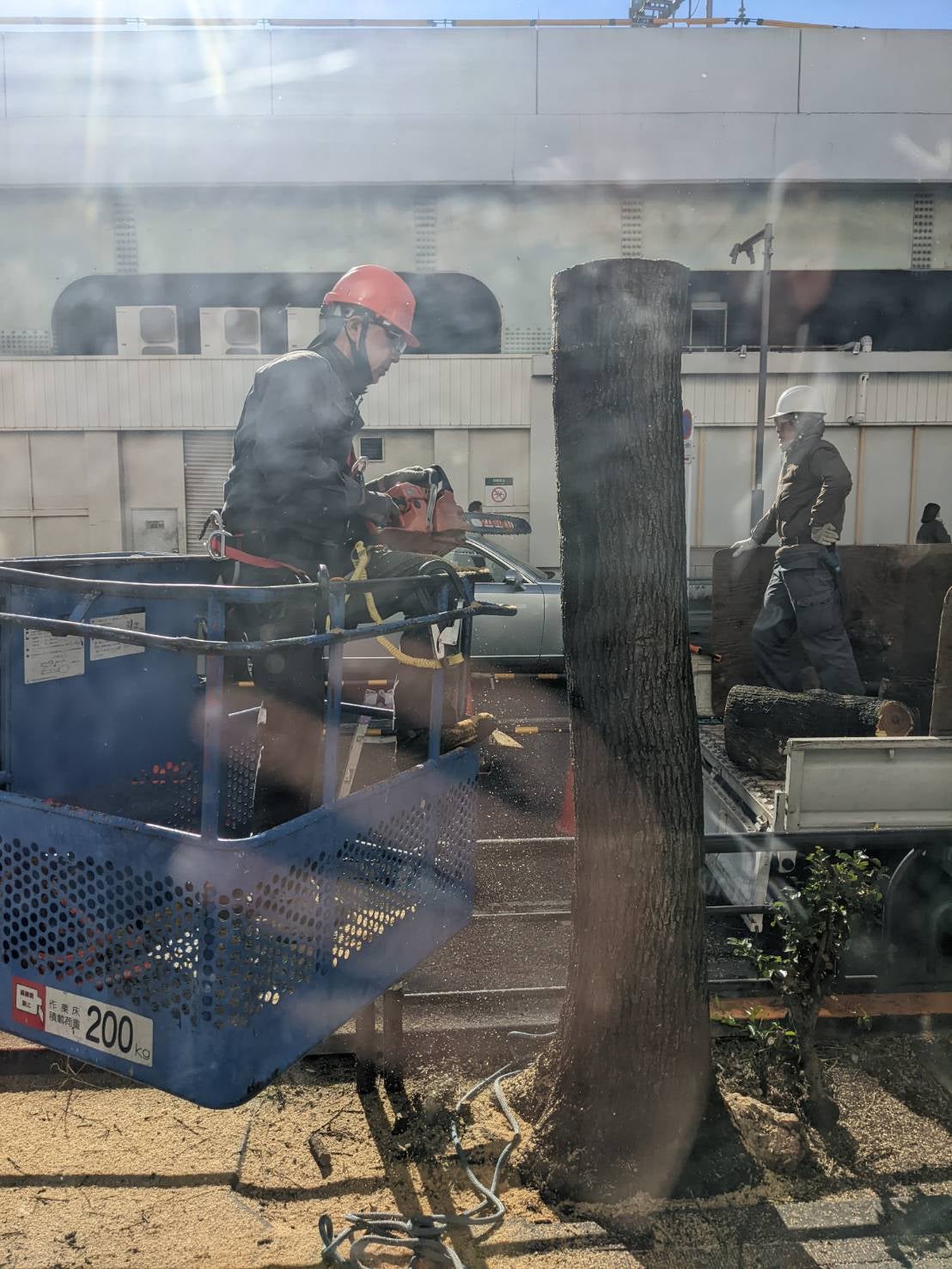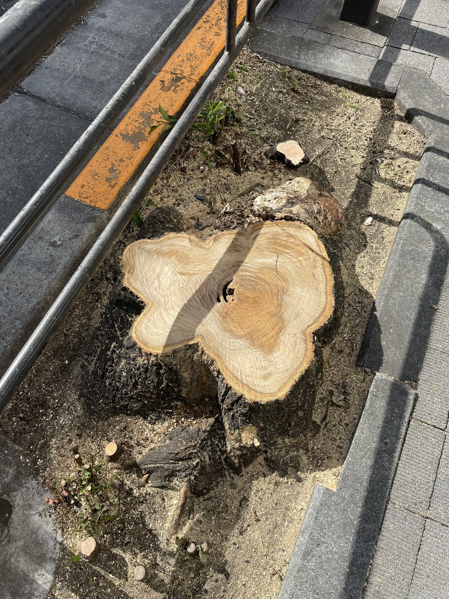 毎日のように通報した結果、土木事務所の方に快く「では伐採候補樹木に入れます!」と言っていただき、本日無事伐採工事となりました。