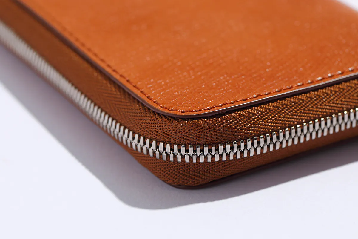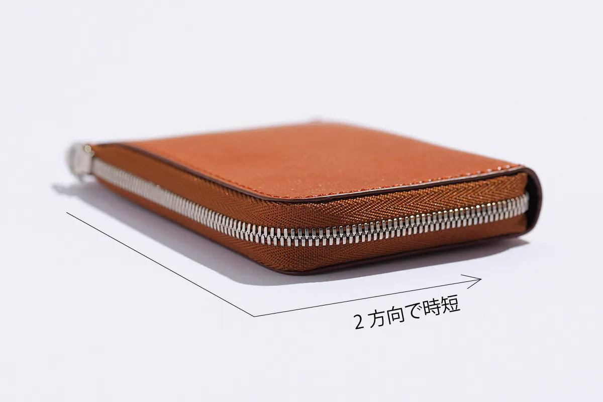 スマート財布では、ジップがラウンドになった3方向というのが主流ですが、お財布を開く度にジップを3方向引っ張ることで6秒ほどかかった1方向分の2秒を削減しました。そのためレジ前で慌てることなくスマートに開け、小銭やお金の確認もバッグのなかでサクッと確認可能といたしました。
