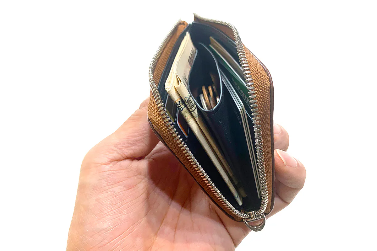 推奨の収納数:カード4〜6枚、硬貨15枚、紙幣10枚