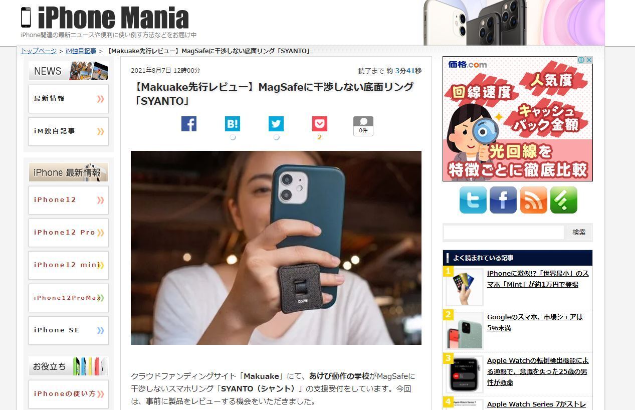 軽く感じる・スマホを汚さない・スタンド機能などを検証していただき、syantoの性能を高く評価していただきました。