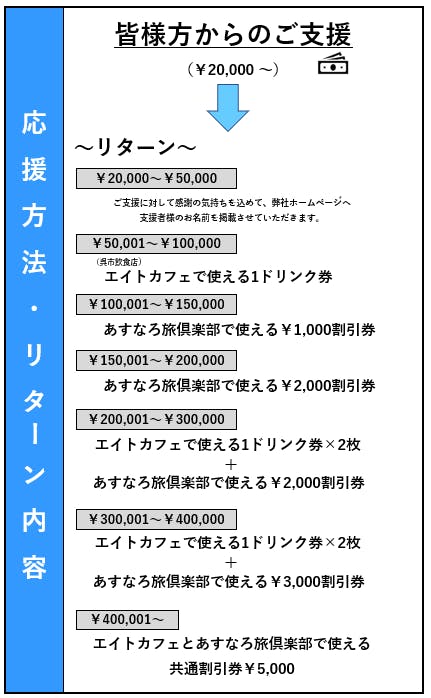 支援方法は弊社、㈱あすなろ旅倶楽部へご支援(先払い)くださいませ。