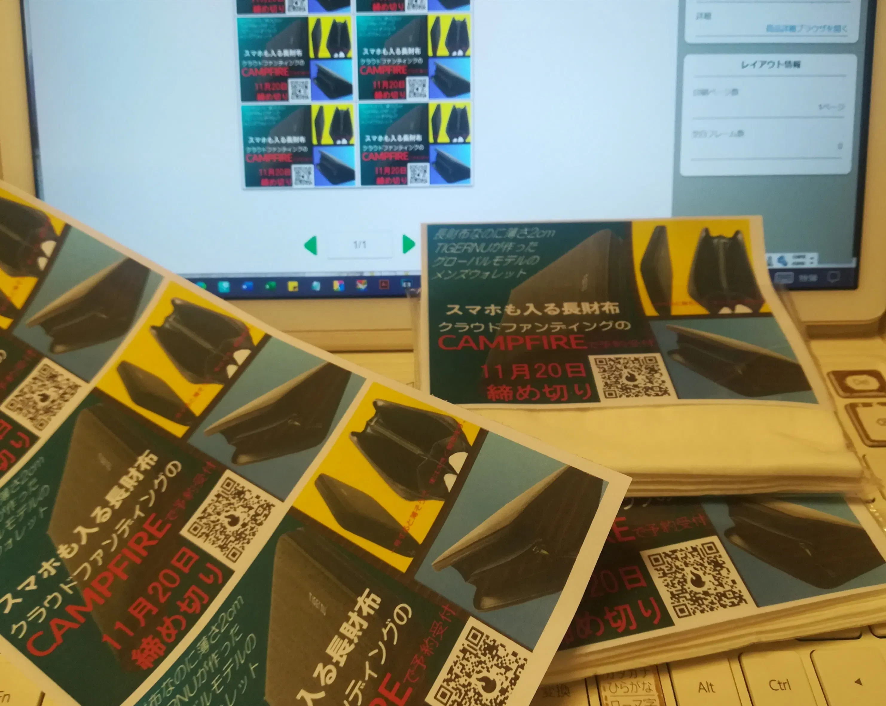 QRコードもちゃんと読み取れたので、家のプリンターで沢山印刷、カットしてチラシ用ティッシュのポケットに差し込めば完成。明日の夕方には駅前などで配れます。