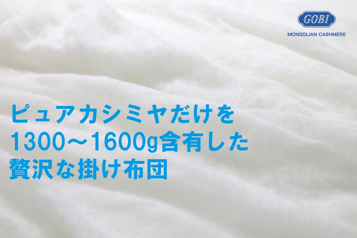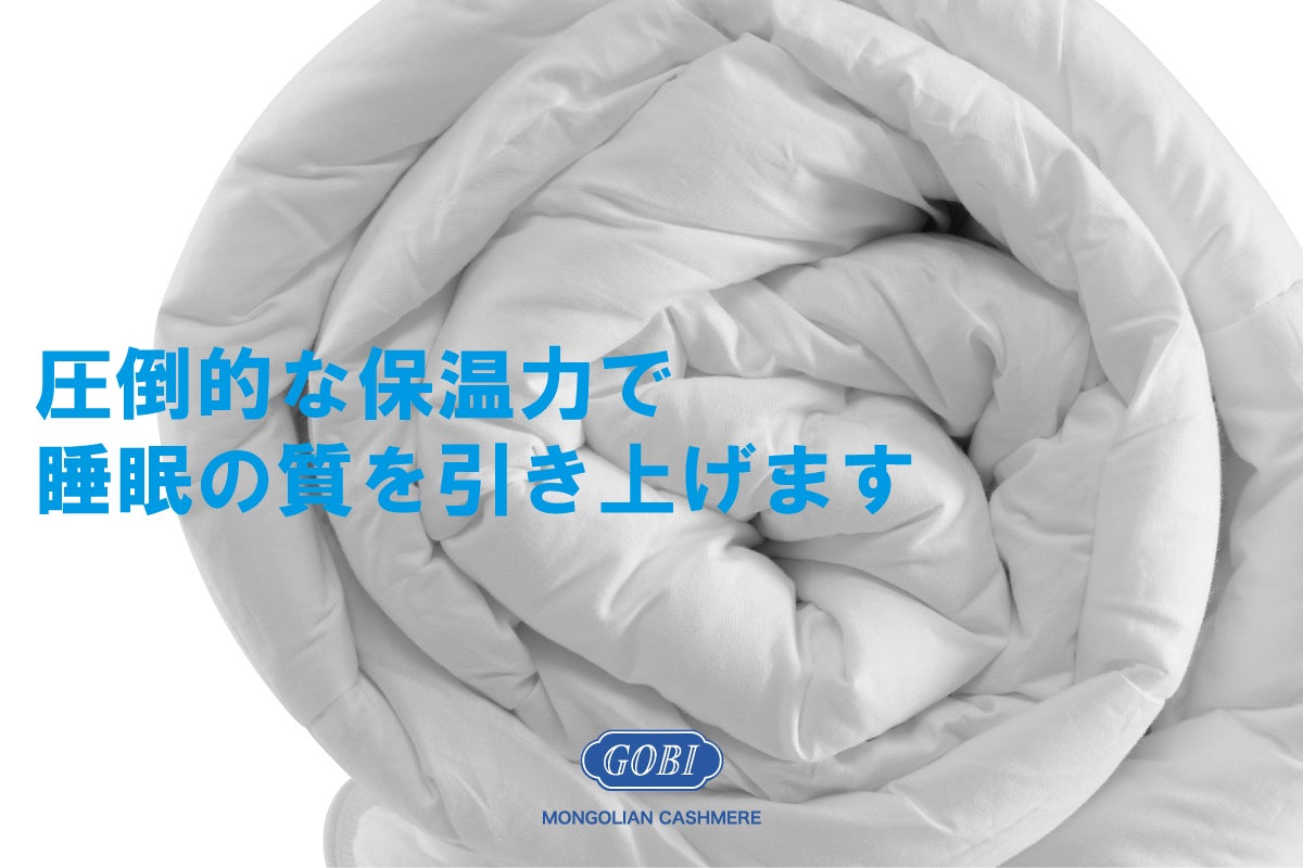 掛け布団にはさまざまな種類がありますが、大人ならば上質なカシミヤ100%の掛け布団を狙いたいところです。カシミヤ独特の圧倒的な保温力。身体に掛けるだけで極上の暖かさを簡単に入れることができます。今回は、世界カシミヤブランド トップ5に選ばれているモンゴルのカシミヤメーカー「GOBI(ゴビ)」と共に、高品質のカシミヤ100%を含有した「格安の掛け布団」を開発しました。日本は初上陸になりますが、すでに海外では、極寒の地モンゴルを中心に13カ国40都市以上の展開国で大ヒット中です!