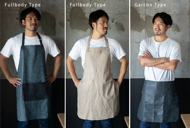フルボディタイプは、最もスタンダードなエプロン。どんな油跳ねからも衣類を守ってくれる安心の存在です。