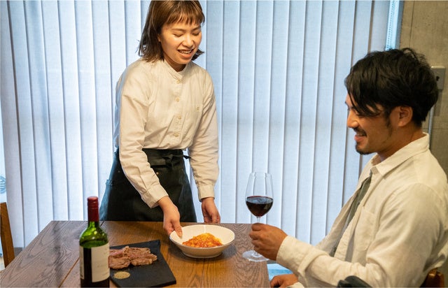ホームパーティーなどで着ていると「それなんの素材ですか?」とエプロンについて聞かれることも。