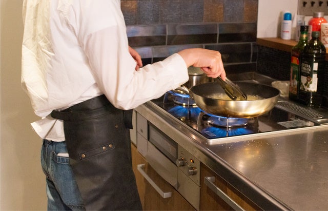 また、一般的には耐熱性や耐水性に懸念が持たれるPU素材ですが、GUSTAのエプロンにはスチームプロテクション加工も施されており、エプロンとしての機能を十二分に発揮します。