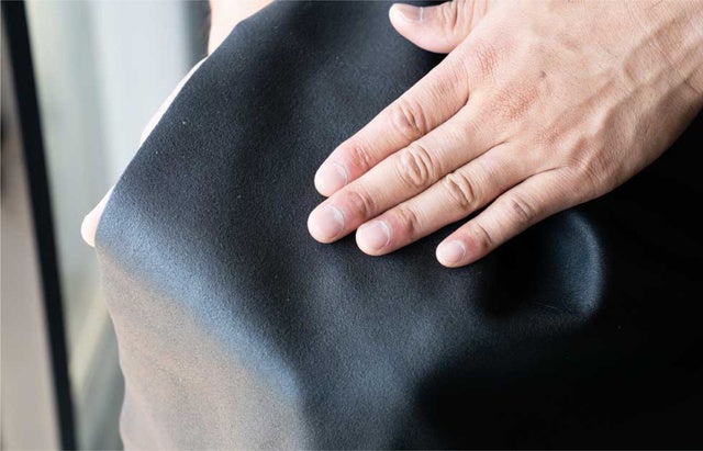 GUSTAのエプロンは、レザーの質感を精巧に再現した高級合皮を使用しています。