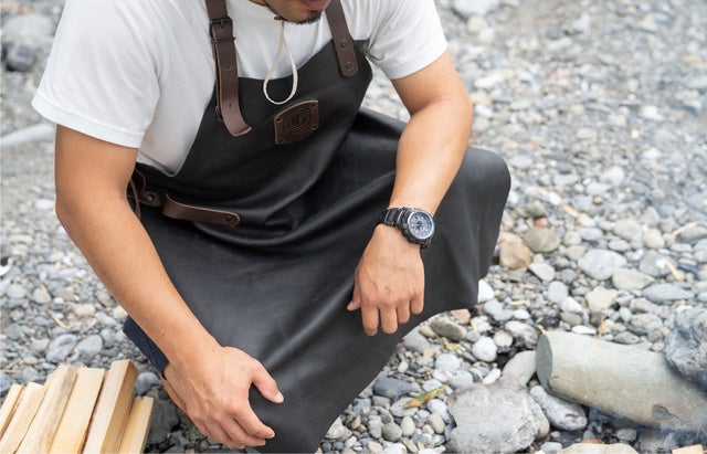 そして前回ご紹介した10秒BBQスタンド「Suitcase BBQ」の繋がりから、「休日に使えるいいもの」としてGUSTAのエプロンシリーズを選んだのは、とても自然な流れでした。