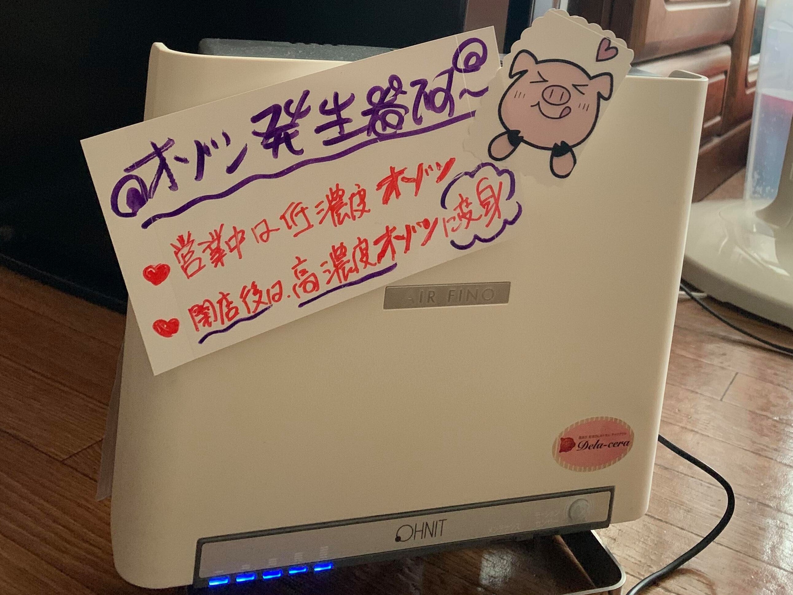 ・店舗にオゾン発生器、空気清浄機2台、アクリル板、体温センサー、CO2センサー、換気扇5台を導入
