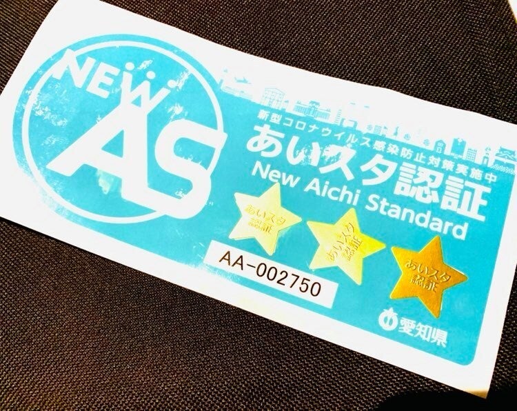 ・愛知県独自のコロナウィルス感染防止対策実施店舗認証制度『あいスタ認証』3つ星獲得