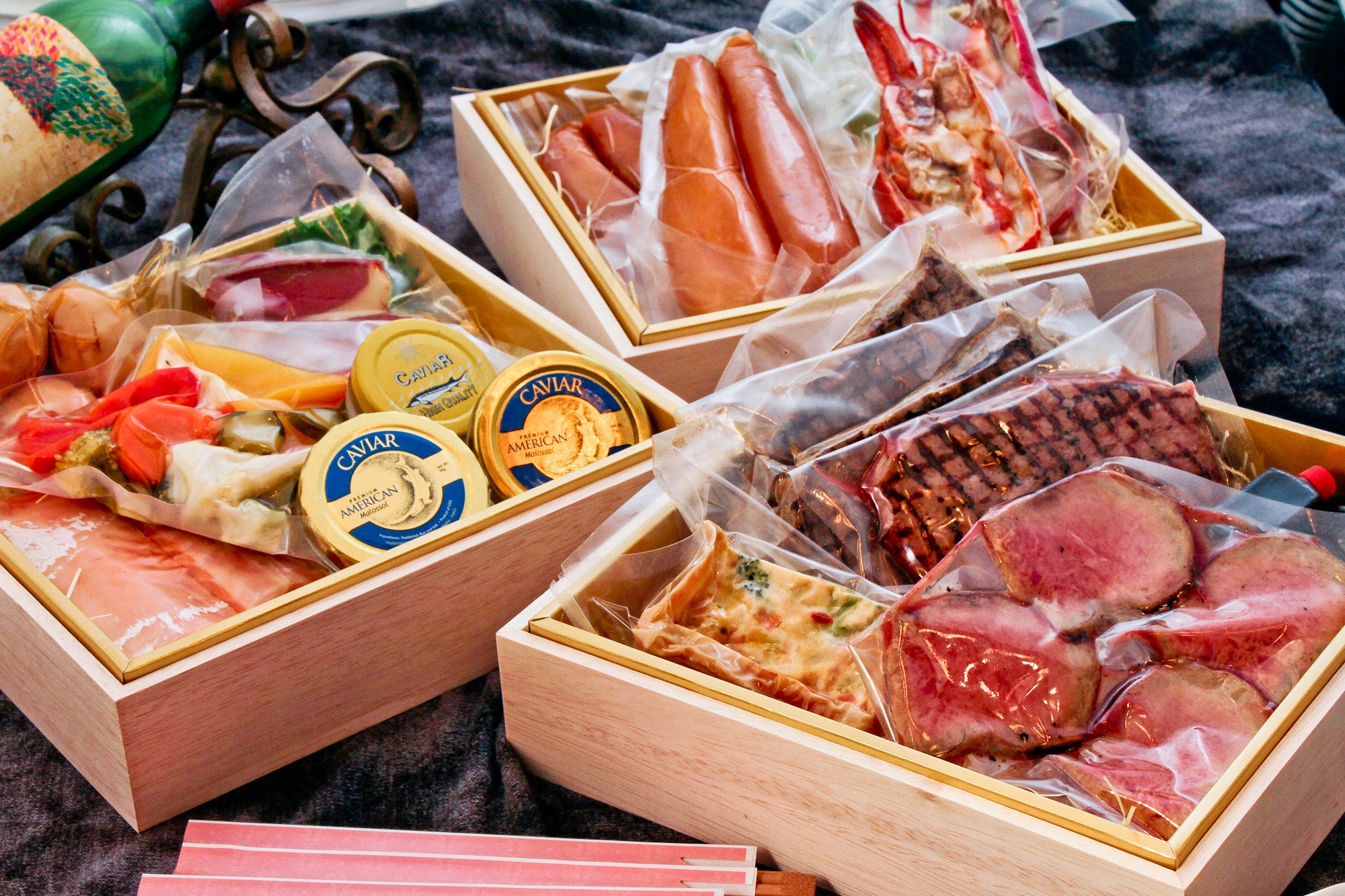 原材料 牛肉(オーストラリア産)、オマール海老、鴨肉、魚卵、卵