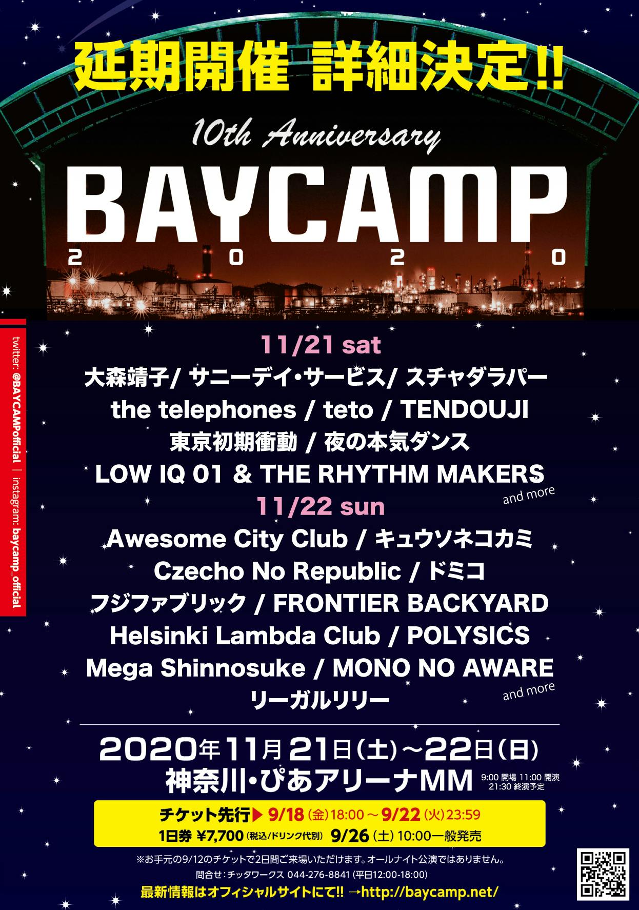 BAYCAMP 2020 の出演アーティスト、日割りタイムテーブル解禁!