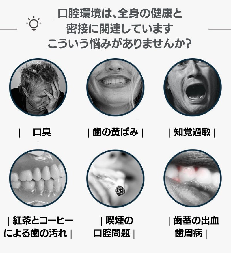 歯のホワイトニングは1日2分で簡単にできる製品にしました。日常の自宅や職場でも、旅行中や出張中でも、白い歯と健康的な笑顔を手に入れるためのケアができます。歯周病や口臭のある方も、口腔の健康の改善をサポート。