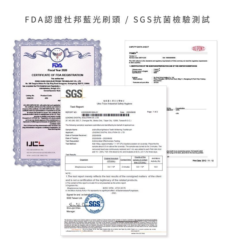 ►FDA認定のDuPontブラシ毛先-歯のエナメル質を傷つけません。また、普通のブラシより耐久性の高い素材です。