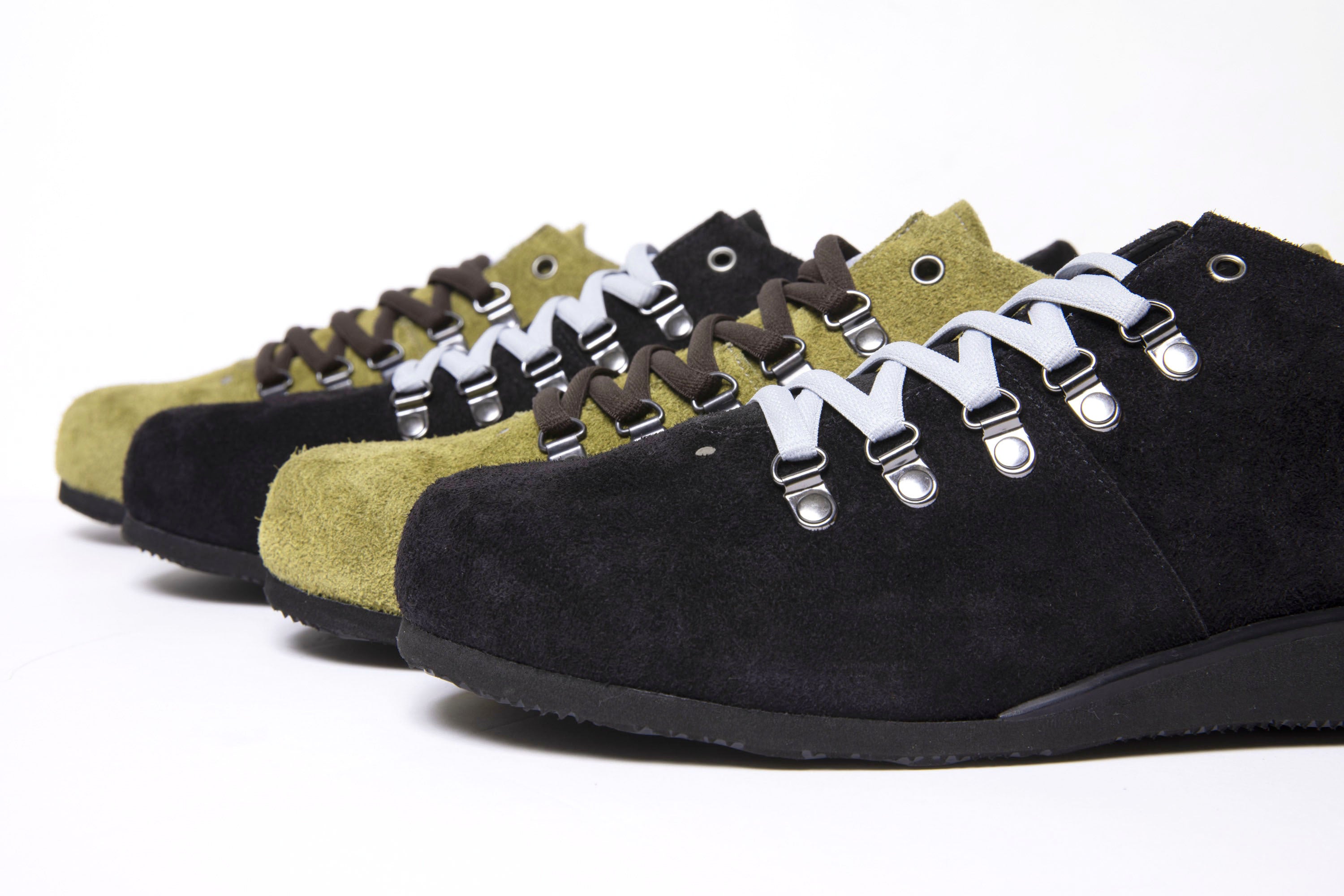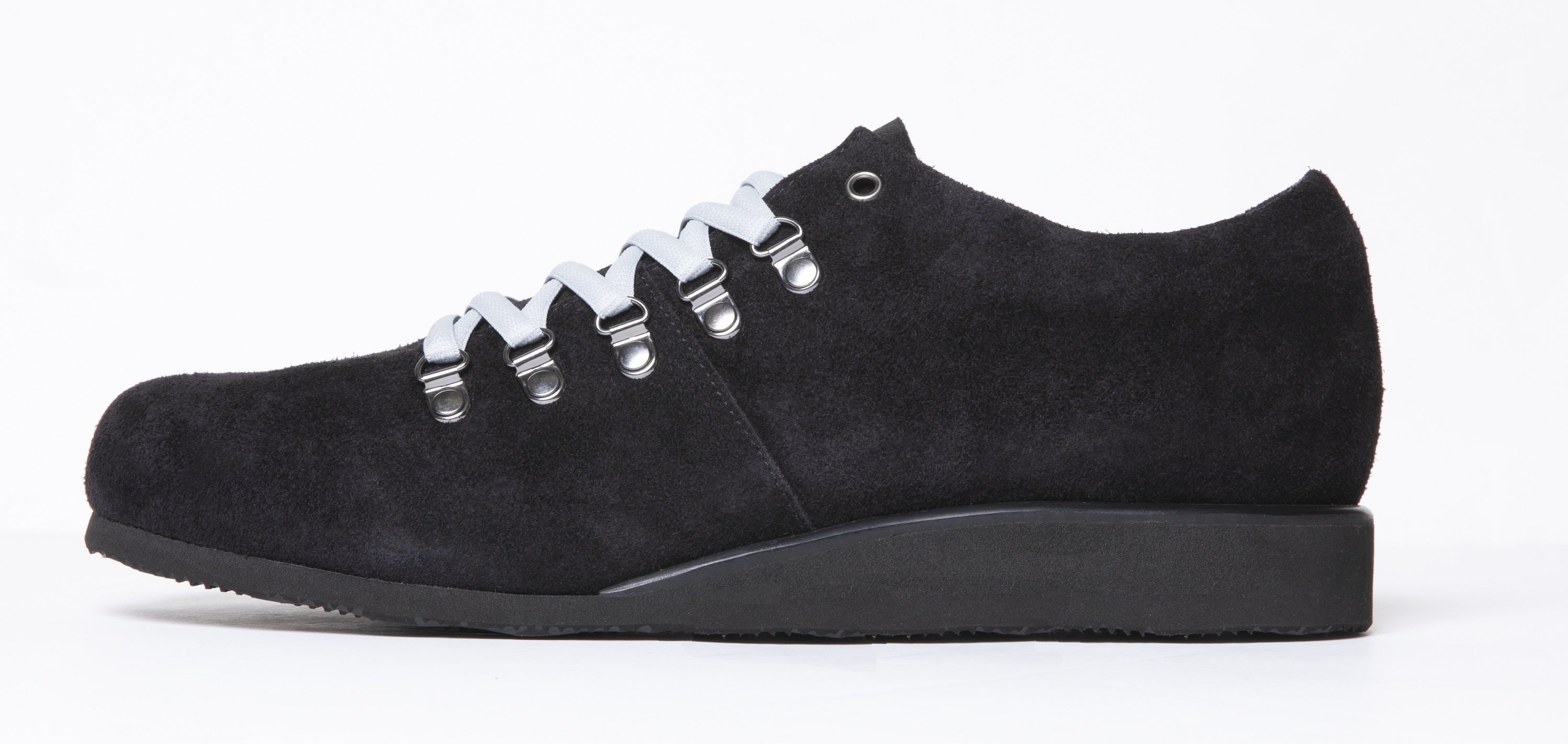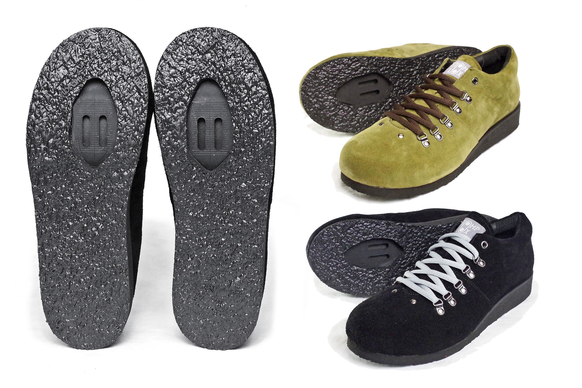 スエード生地の革靴で、カラーリングはブラックとオリーブの2色を展開。スポーツ用ビンディングシューズとは一線を画するカジュアルなデザインが特徴です。