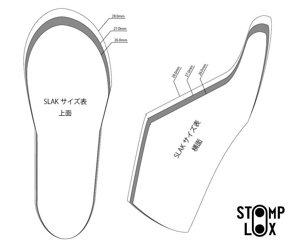 足の先端部分をかなり広く設定し、幅広な足の方でも窮屈に感じることは無いでしょう! 靴全体で足をホールドする気持ちよさもSLAKの特徴です。