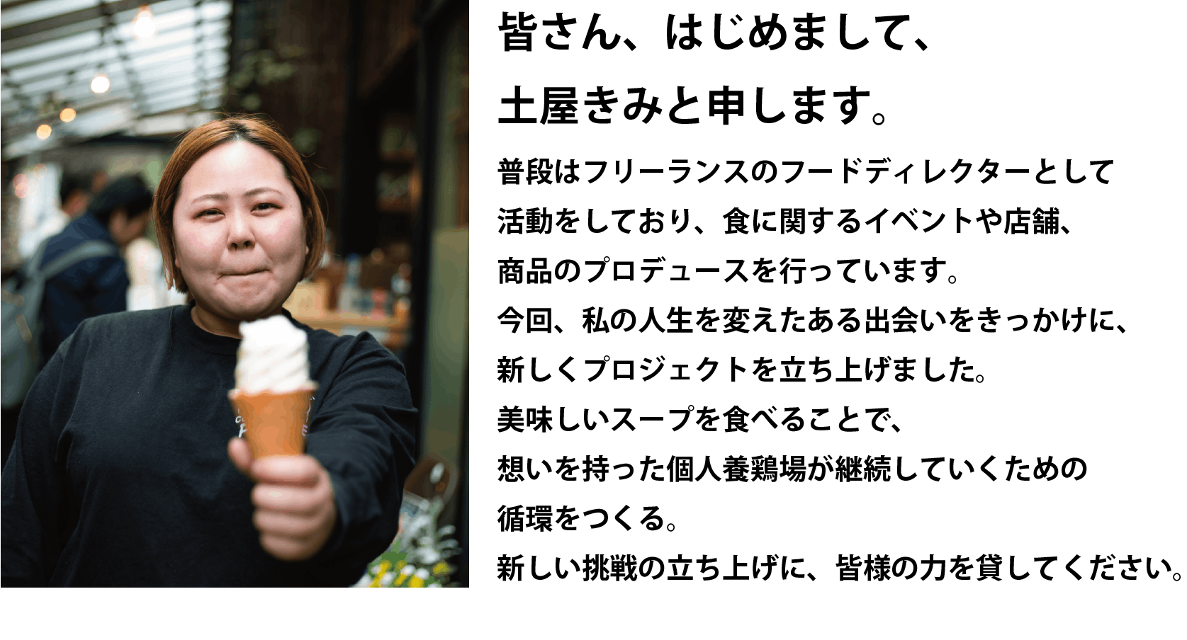 2020/11/16 12:45昨晩、クラウドファンディングが終了しました。ドキドキしながらページ公開ボタンを押した45日前が、昨日のことのようです。このクラウドファンディング期間で、たくさんの方に応援、支援していただくと共に、私たちの活動を知ってもらえて、優しさが心にしみる日々でした。そして何より、私たちが4年間かけて少しずつ大切に温めてきたプロジェクトに、賛同してくださる方々と出会えたことで「これからも、このまま真っ直ぐ進んで行こう!」と改めて決意を新たに、強く背中を押される想いでした。当初掲げていた100万円の目標を大きく超え、最終結果として1,754,780円の資金が集まり、212人の方に支援いただきました。想像を超える出来事で、鶏革命団メンバーみんな、とにかく驚きを隠せません。皆さんからのサポートを大きな糧として「黄金の鶏ガラスープ」商品化へ向け、引き続きプロジェクトを進めていきます!支援いただきました皆様へのリターン発送は12月上旬〜中旬を予定しております。ぜひ楽しみにもうしばらくお待ちくださいませ。年明けの2021年1月には「黄金の鶏ガラスープ」の一般販売もスタートする予定で、まずはオンラインでの販売をはじめるべく現在絶賛サイト作成中です。商品発売のアナウンスや、これからの鶏革命団の活動はインスタグラムを通じて発信していきます。ぜひフォローをお願い致します。https://www.instagram.com/niwatorikakumeidan/今後とも、鶏革命団をどうぞよろしくお願い致します!鶏革命団 土屋きみ もっと見る