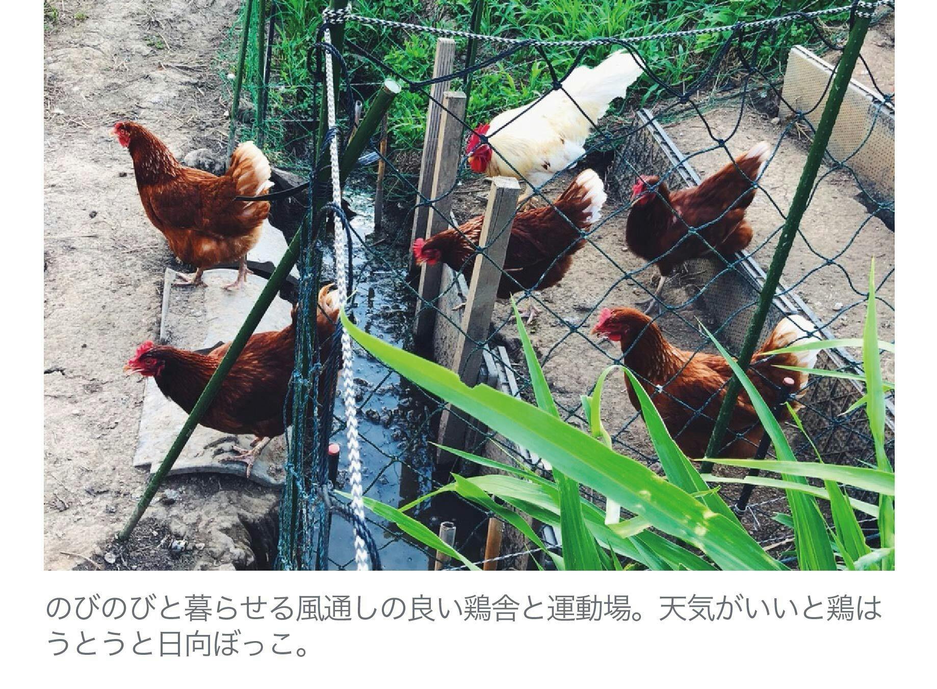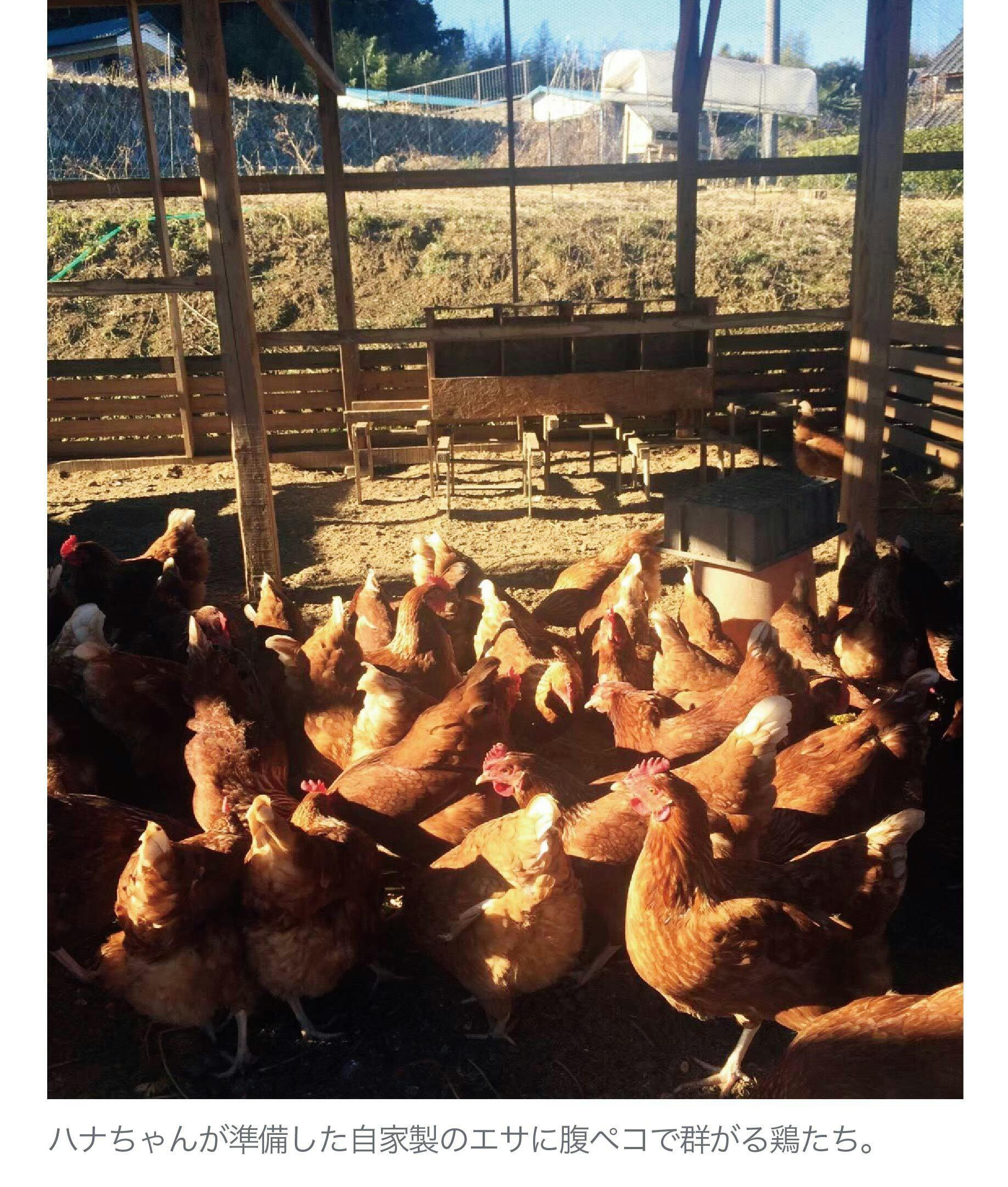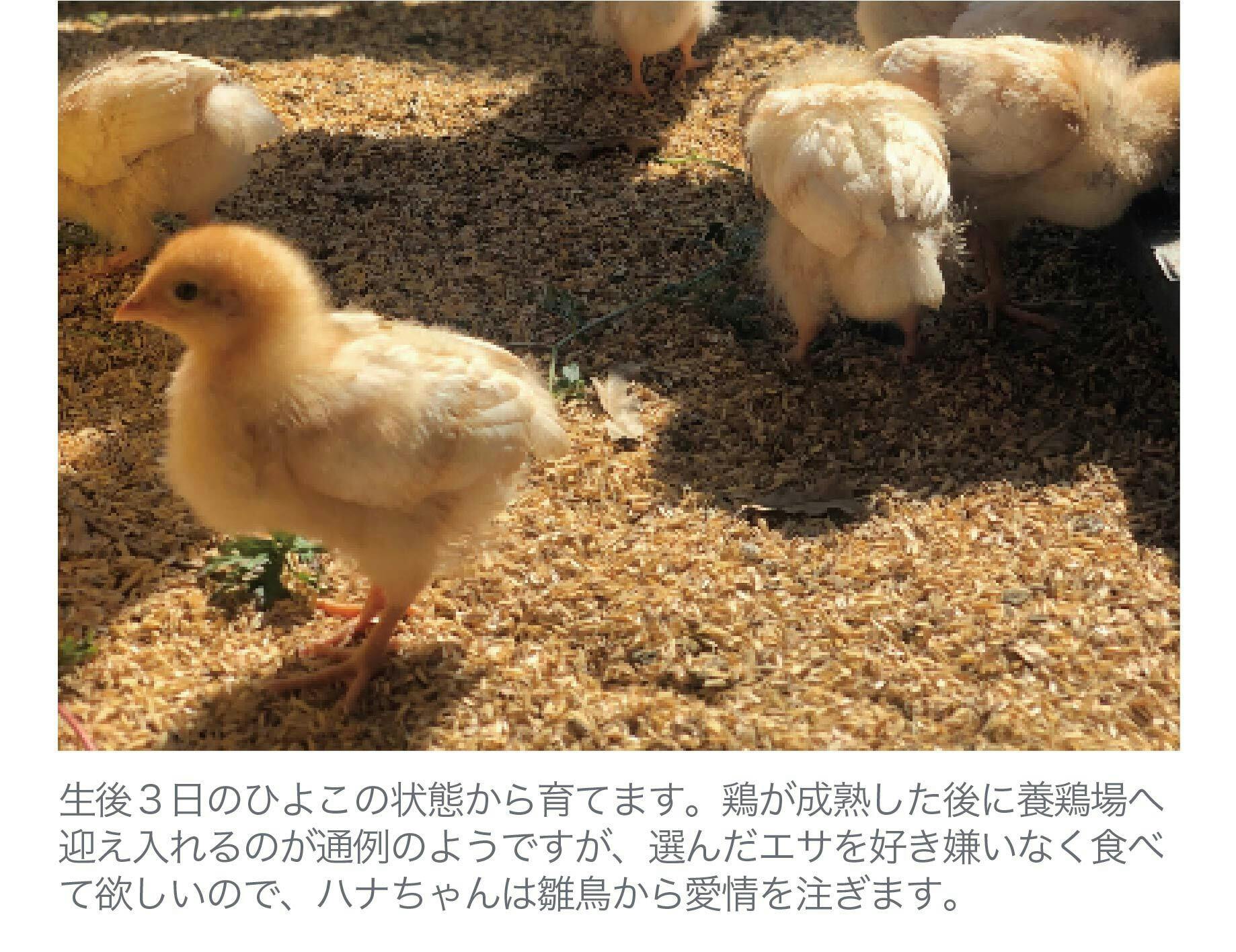 ハナちゃんが想い描いたのは、狭い敷地で飼育する大量生産の形ではなく、鶏がのびのびと健康に暮らしながら、卵を産むことができる養鶏。手探りの状態でも、信念を強く持っていて、とても大切に鶏を育てている姿に深く感銘を受けました。