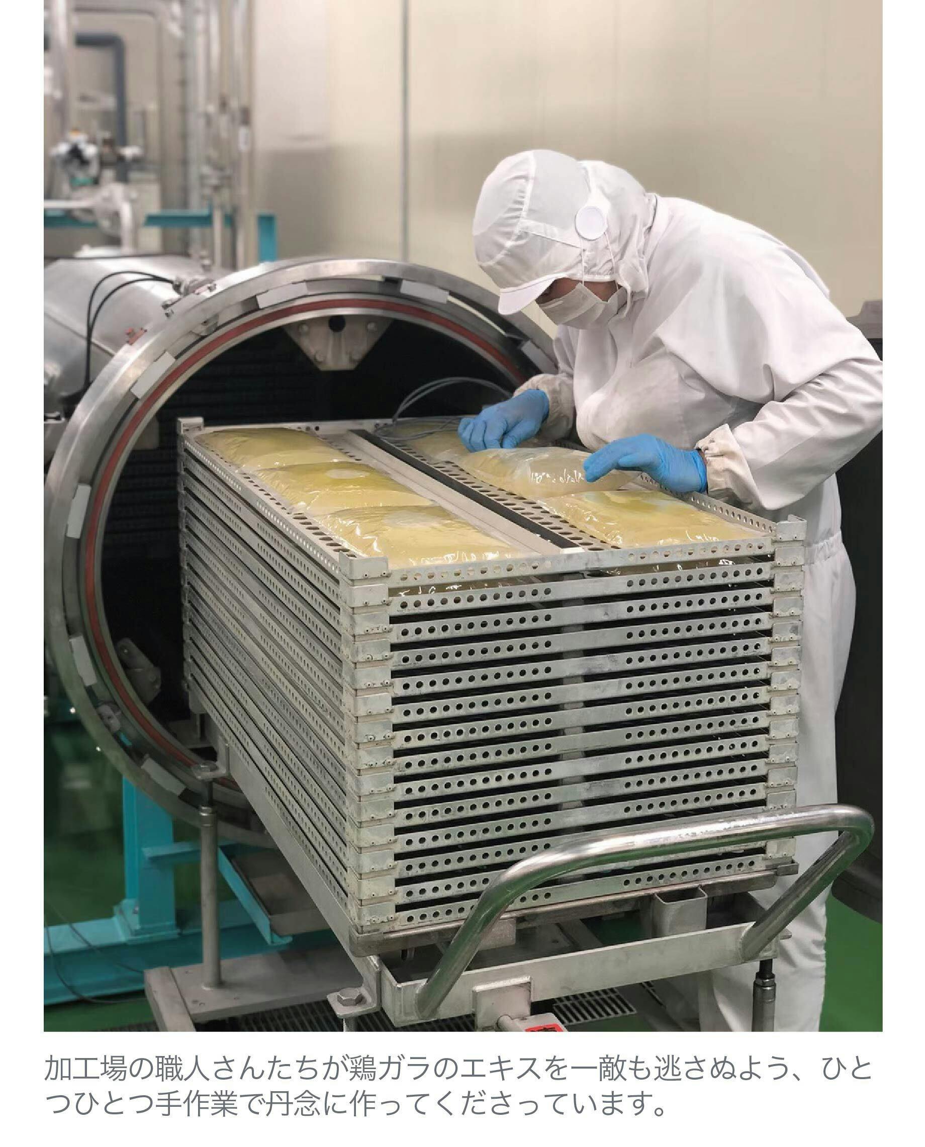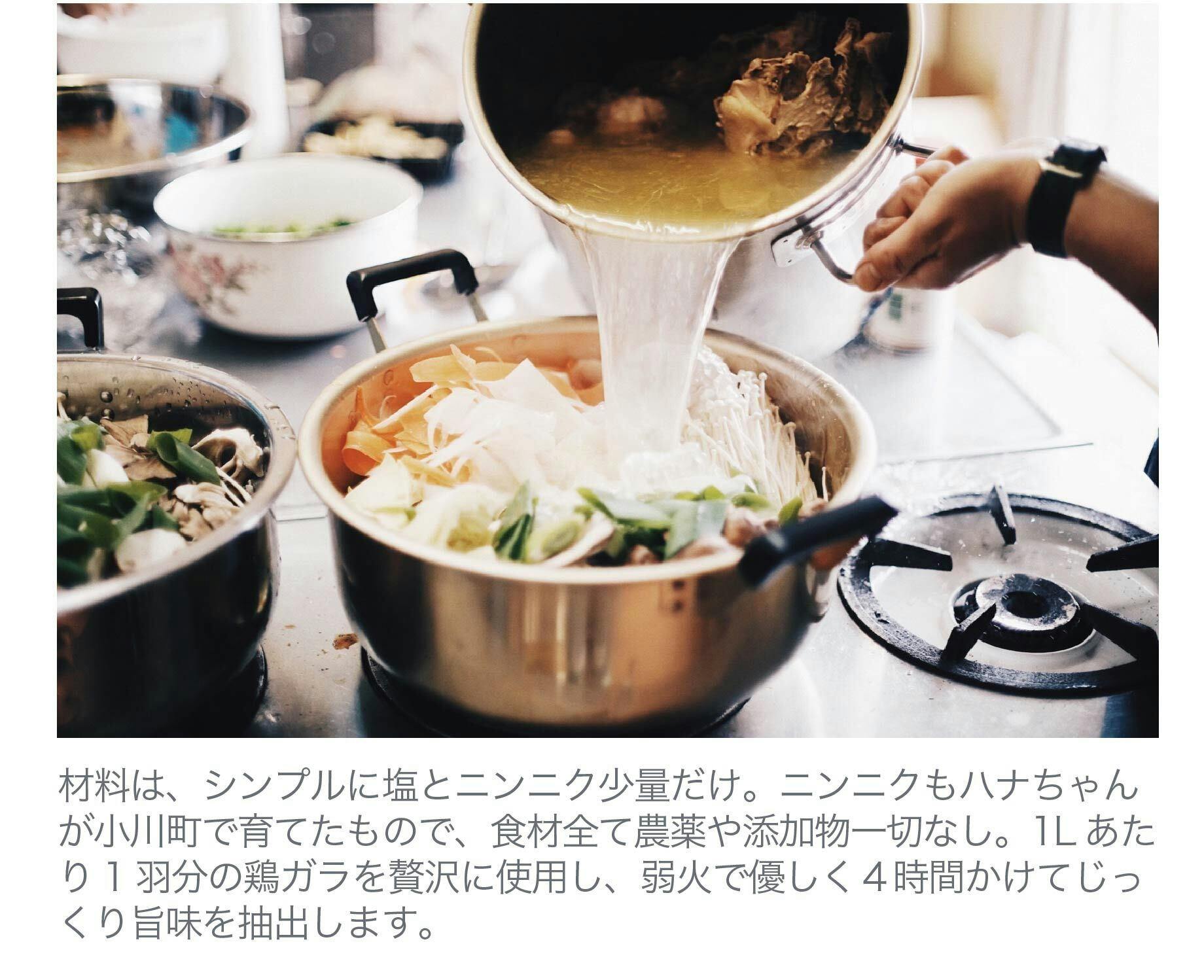 時を同じくして、ハナちゃんの養鶏の規模も着々と大きくなり、ネクストフェーズへ。その場しのぎのイベント出店では、引退後の鶏の行き先が足りなくなってきており、ハナちゃんの養鶏が持続可能な形になるよう、まずは黄金の鶏ガラスープをレトルト化して、常温で長期保存を可能にし、そして色んな方に届けられるようにしたいと考え始めました。