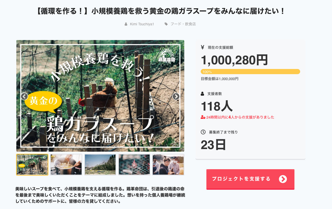 クラウドファンディングのページを立ち上げてから、色々な方から反応をいただき、講演に呼んでいただいたり、たくさんの方に鶏革命団のプロジェクトを知っていただく機会となり、温かい応援のコメントもいただき、嬉しい気持ちでいっぱいです。