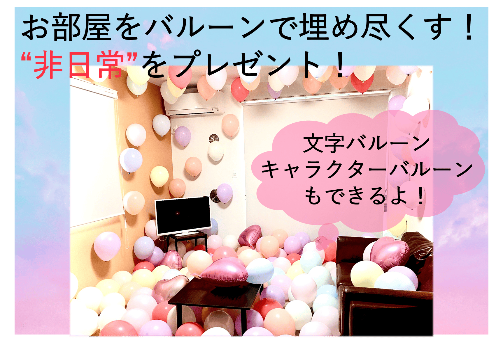 キャラクターバルーンや文字バルーン(HAPPY BIRTHDAY等)は要相談。