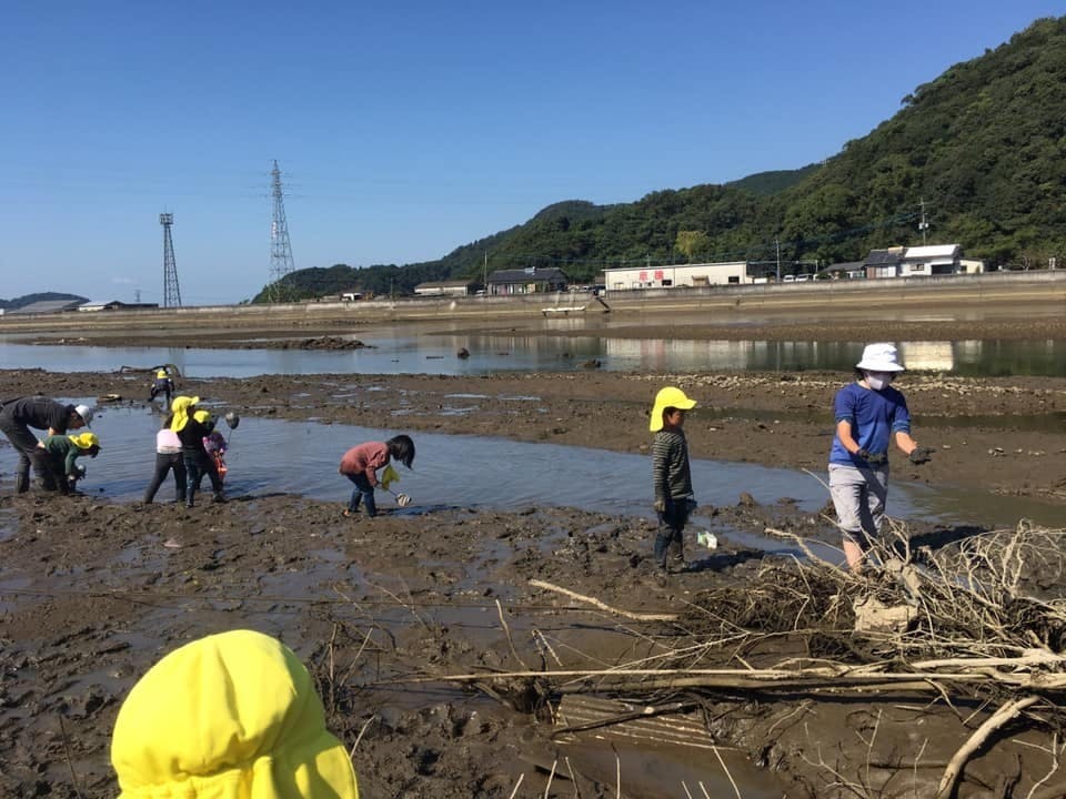 昨日10月13日、最初に海の絵本を届けた『あしきた・まちのこども園』の5歳児さんを対象に干潟観察会を実施しました。