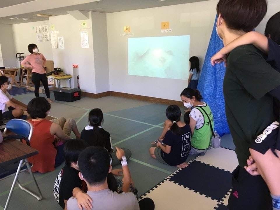 海のお話会では、海に関心のある子からの質問攻めにあい、イルカの映像に歓声がわき、タツノオトシゴについて話が止まならなくなるなど、笑顔を届けることができました。避難所での子どもの居場所つくりを行っている、認定NPO法人カタリバさんにご協力いただき実施しました。