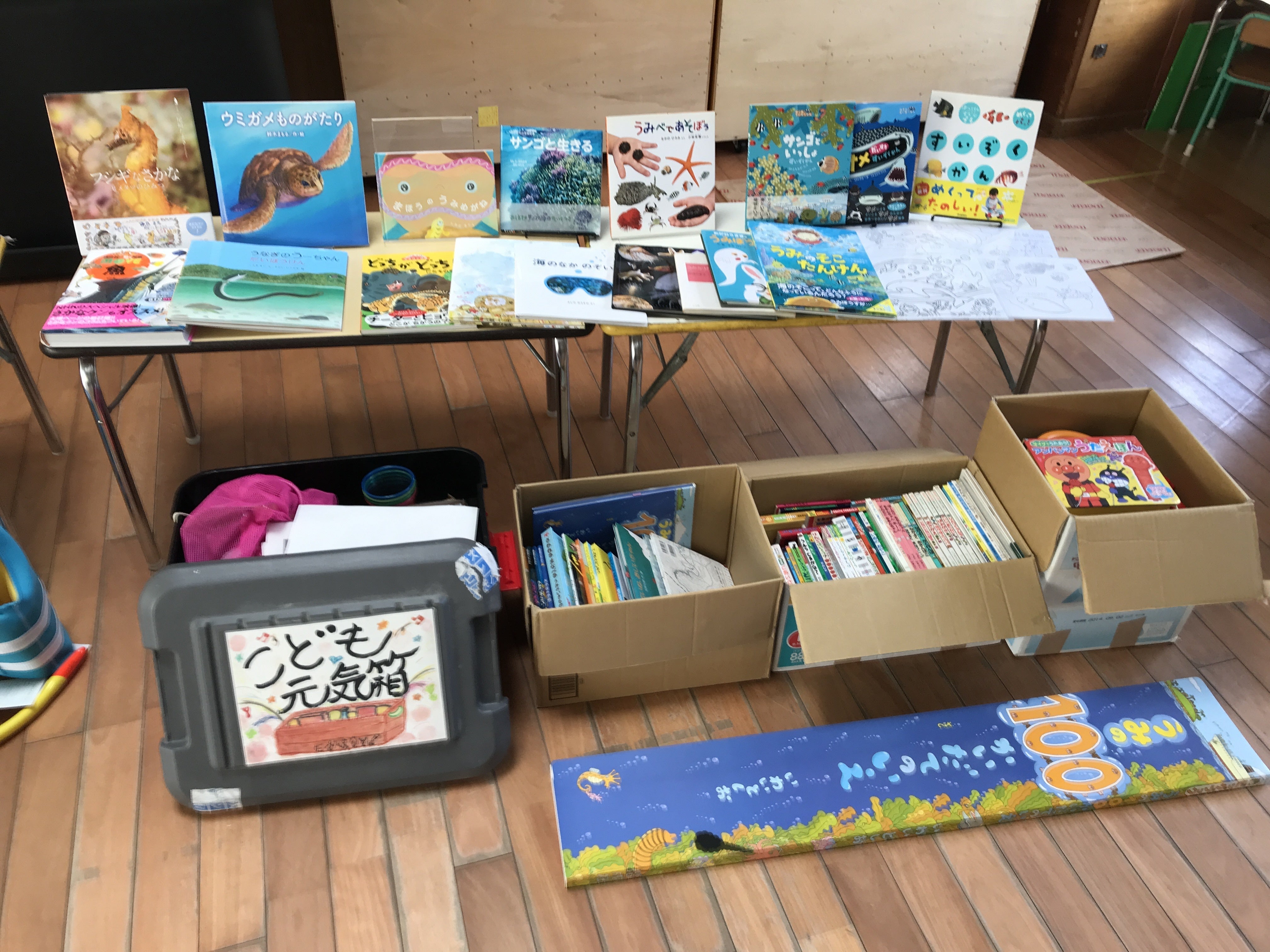 床上浸水で多くの絵本を破棄せざるをえなかった保育園が複数あります。そこで、保育園に絵本を卸している熊本こどものとも社より、被災し絵本を必要している保育園をご紹介いただき、絵本をお届けします。他プランとの総合的な環境教育の視点から、海や自然に関する絵本を中心としますが、保育園の先生方からも日々の保育で活用いただける絵本をお聞きして、ニーズに合わせた選定を行います。そして、海のぬりえや魚のペーパークラフトなどこども元気箱に入っている環境教育教材も同封して、絵本と一緒に届けます。
