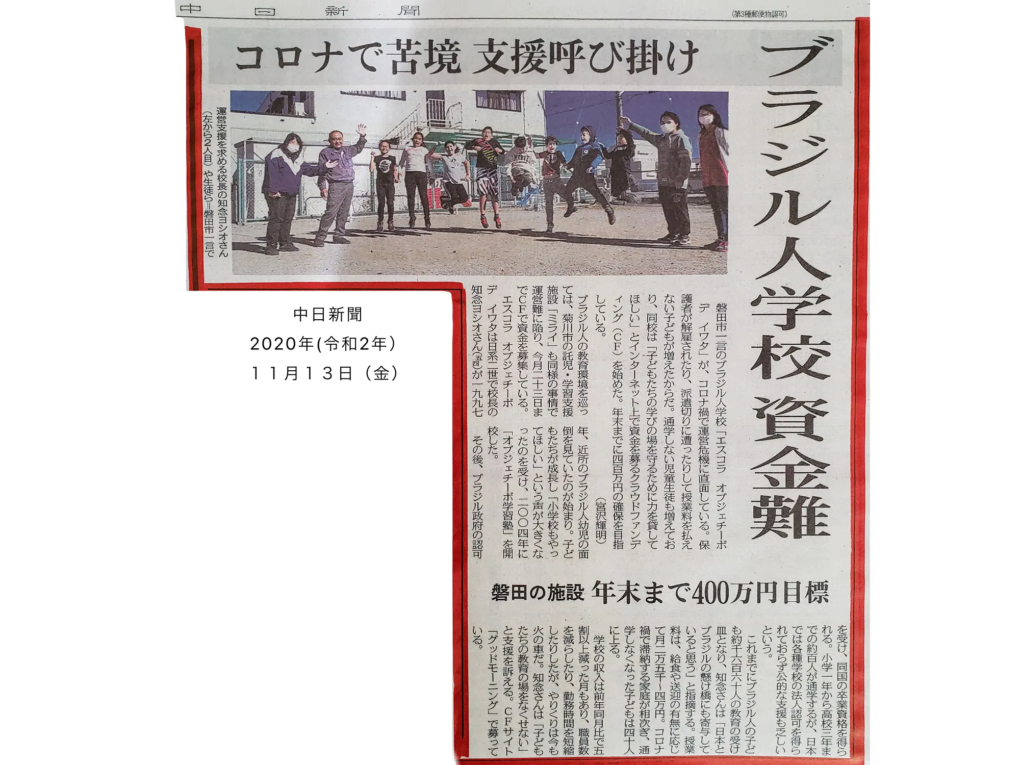2020年(令和2年)11月13日(金)の中日新聞