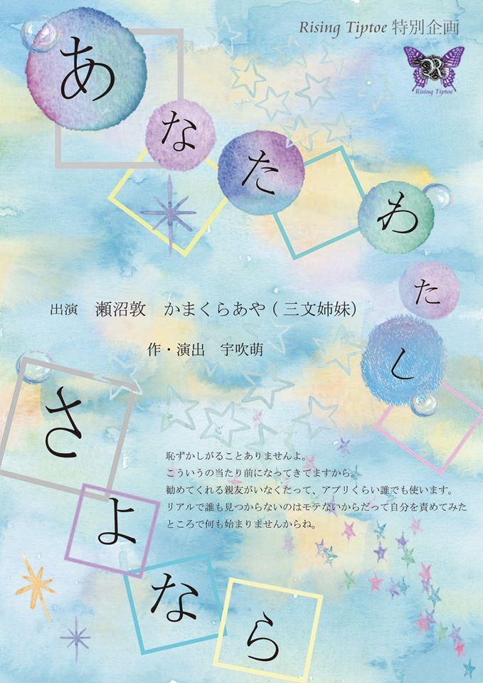 はじめまして。劇作家・演出家・Rising Tiptoe主宰の宇吹萌と申します。Rising Tiptoeは文化庁新進芸術家在外派遣制度でNYで戯作修行した後、2006年に私が立ち上げた演劇企画です。この15年間、都内で年2回のペースで演劇公演を行い、幅広い客層のお客様にご覧頂いています。
