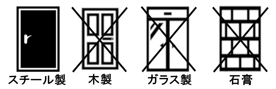 ・本製品はネオジウム磁石を搭載しており、磁力によりスチール製のドアにくっつき固定する仕様となっております。そのためスチール製のドア以外(木製、ガラス製、石膏性、樹脂製、アルミニウム製など)には設置することができません。