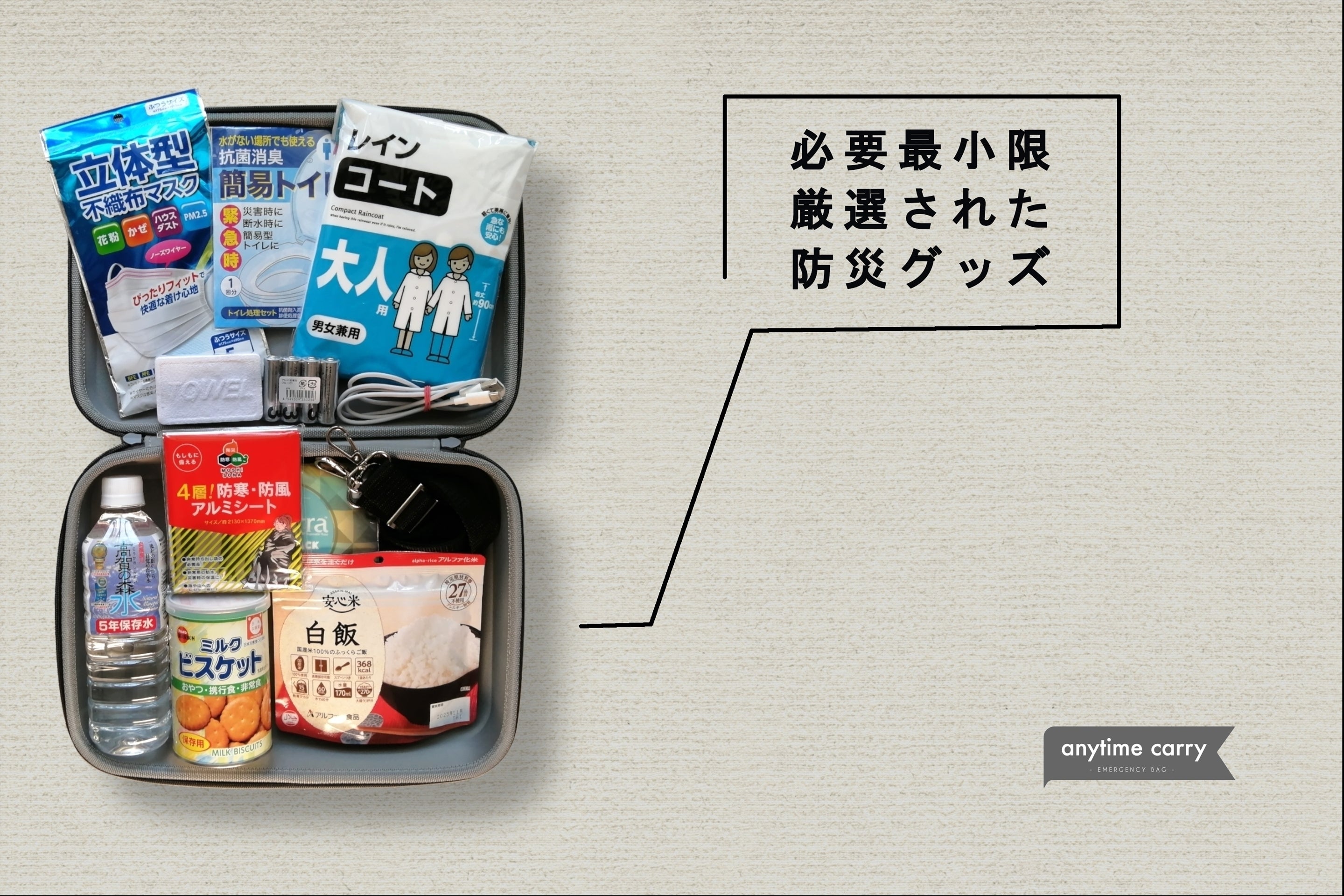 そして防災備蓄の普及を進めることでひとりでも多くの人が不安なく過ごせる社会を作ること。これがanytime carryに込められた思い。そして挑戦です。