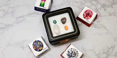15,000円①…天然オパール4種セット(簡易鑑別ソーティング付き)+ 宝石アートパッケージのオリジナルチョコ×4個