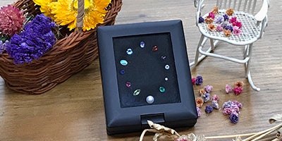 ※封入される各月の誕生石は下記になります。1月:ガーネット、2月:アメジスト、3月:アクアマリン、4月:ダイヤモンド、5月:エメラルド、6月:パール、7月:ルビー、8月:ペリドット、9月:サファイア、10月:オパール、11月:トパーズ、12月:タンザナイト