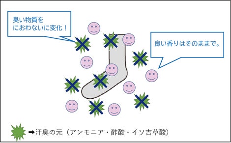 臭いの成分をあっという間に生地が吸収して、イヤな臭いをすばやく「におわない」物質に変化させます。