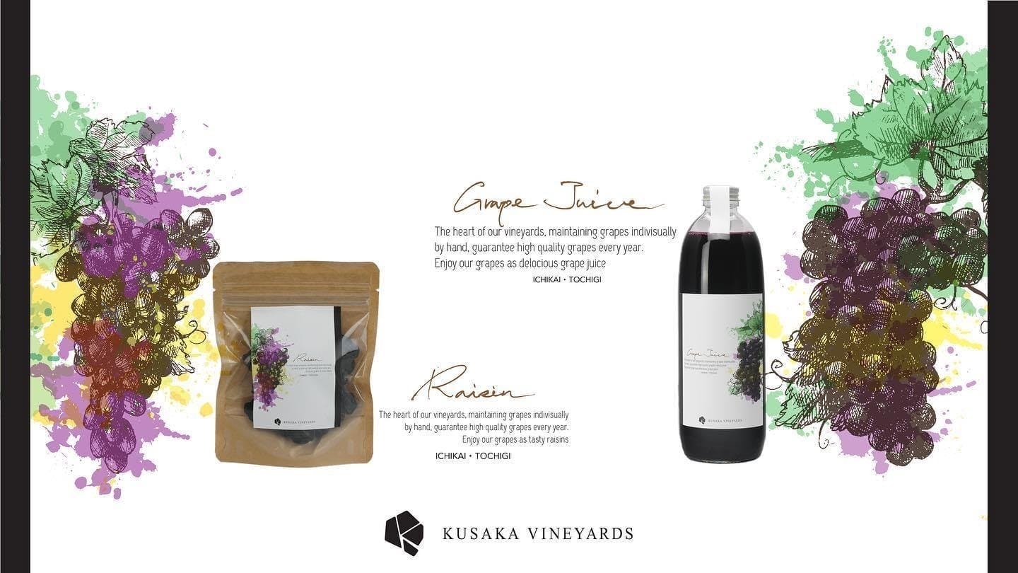 KusakaVineyardsではワインを中心に生産しておりますが、他の加工品もあります!一昨年からレーズン、昨年からジュースと商品開発して参りました!