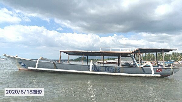 所有しているダイビングボートは一艘、アウトリガーのついた木造船で全長が15m程度、通常1~2年に一度船を引き上げメンテナンスをしています。