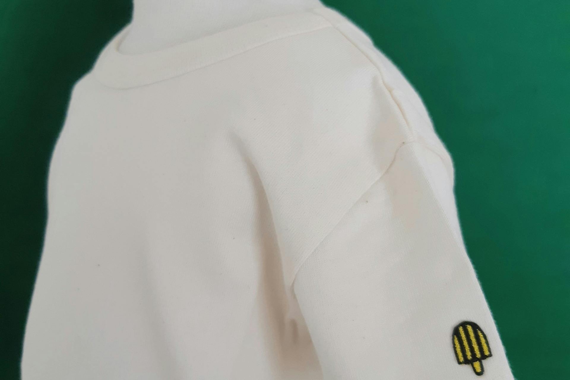 ↑このTシャツは前回のプロジェクトで完成した子ども用Tシャツです。